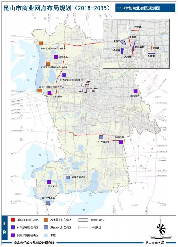 规划重点打造大西门商业项目、朝阳都市广场项目、仓基岛文化休闲区等商业空间,并推动现有传统商业街区改造,引导老旧商业设施更新升级,形成体现昆山历史文化、具有全域影响力的市级商业中心区。