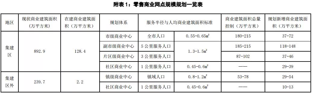 至2035年,全市零售商业网点面积控制在1520-1635万平方米。近中期强化择商选商,控制超大型商业设施(面积5万平方米以上)的盲目建设;设施供给“强化两端、突出特色”,以高端市级商业中心、贴近民生的社区商业中心以及特色商业空间为重点。